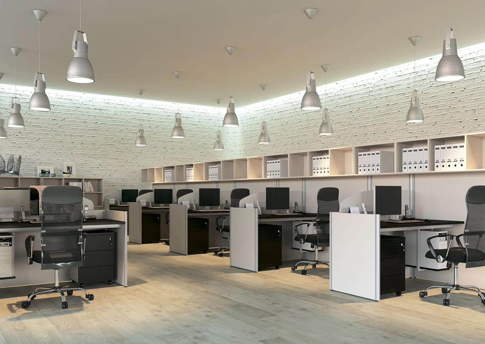 - Рабочее место может комплектоваться готовыми столами серии «RIO | Base» или собираться из столешницы и комплекта металлических траверсов. Траверсы в этом случае крепятся непосредственно к перегородкам.