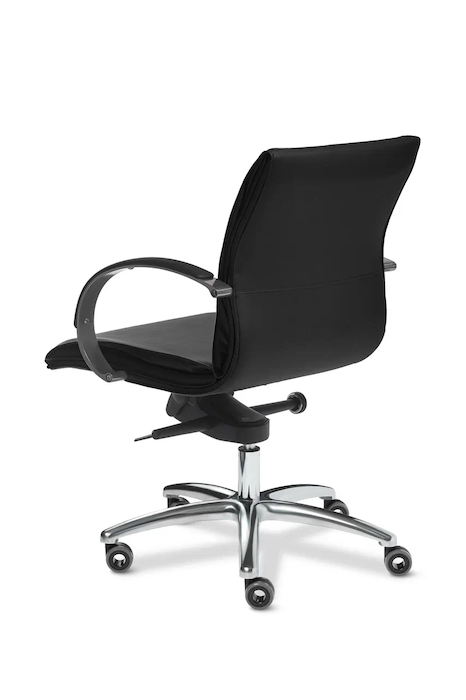 Элегантный и эргономичный силуэт кресла «Laguna» создает образ одновременно классический и современный — это кресло подойдет как для кабинета руководителя, так и для домашнего офиса. Строгий деловой дизайн кресла, хромированные утончённые мягкие подлокотники модели, дополняющие элегантный образ кресла, и различные вариации материалов обивки делают модель «Laguna» особенно комфортабельной. Кресло LAGUNA Chrome B - это эксклюзивная разработка ковша-каркаса, наполнения и чехла кресла, сочетает в своём дизайне изящество, практичность и приятную эргономику. Кресло для посетителя LAGUNA Chrome В - выполняется без подголовника и предназначено для приёмных и переговорных зон. Подлокотники и крестовина кресла - полированный алюминий. Отлично подходит для всех видов интерьеров и любой офисной обстановки. Кресло оборудовано механизмом качания с регулировкой под вес и фиксацией в четырёх положениях - "Мультиблок" (может быть укомплектовано и другими механизмами такими как - "Топган" и Топган-Люкс"), а так же регулировкой высоты за счет установленного в крестовине кресла газо-масляного амортизатора (газпатрона) 3-ей категории стабильности (DIN 4550 class 3), категория повышенной надёжности: газпатрон выдерживает нагрузку в 200 тысяч циклов при динамической стендовой нагрузке в 80 кг. Минимальное давление, при котором срабатывает газпатрон - 21,5 кг, максимальное - около 150 кг. Толщина поролона на сиденье и на спинке 50 мм. Применяемая марка поролона 30/40 (плотность/жесткость) обеспечивает долговечность кресла. Каркас кресла монолитный, выполненный из гнутоклееной фанеры в виде ковша, с выраженным поясничным подпором. Толщина каркаса - 17 мм. Чехол кресла выполнен из черной или цветной мебельной, натуральной кожи сквозного крашения со среднезернистым тиснением из цельных шкур крупного рогатого скота, задняя часть спинки по евростандарту из кожзама (компаньона) в цвет кожи. Толщина шкуры в стандартной точке 0,9-1,1мм. Также чехол может быть выполнен из экокожи или других материалах. Для придания объемности и правильной эргономики чехла кресла - применяется холофайбер (марка 400). Все указанные материалы экологичные и износостойкие. Подлокотники кресла - литые, выполнены из полированного алюминия. Укомплектованы мягкой накладкой обтянутой материалом аналогичным материалу чехла (изготовление подлокотника без накладок технологически невозможно). Крестовина кресла - литая, выполнена из полированного алюминия, выдерживает нагрузку до 150 кг. Ролики - паркетные прорезиненные (обеспечивают сохранность паркета, ламината). Каждый ролик рассчитан на нагрузку в 30 кг.